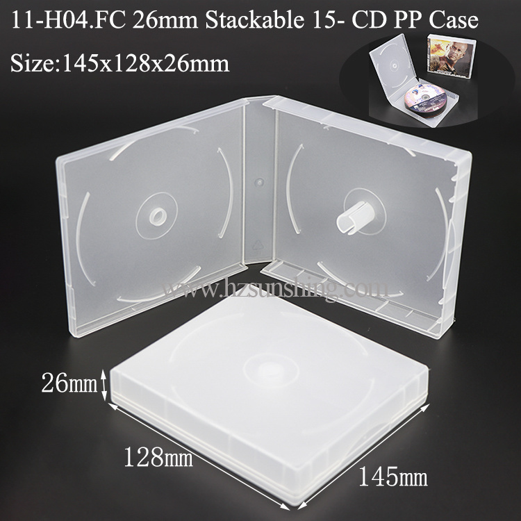 Product Name Wholesale 26mm Premium 15 Discs Stackable CD DVD Case Storage Holder 1 Hub Stackable Up To 15 Discs CD DVD Blu-Ray Packaging Box Size 145x128x26mm Color Fog, Black or Customized Material PP Raw Material Features - Made of premium high quality polypropylene.